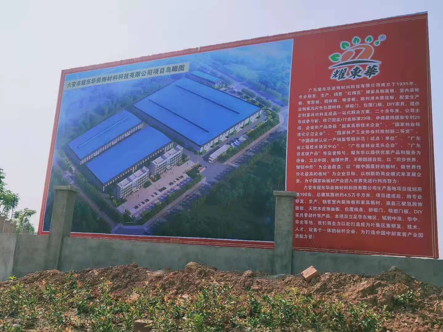 六安市耀東華項目概況:工廠占地面積100畝,總建筑面積44286平方米。分兩期建設,第一期建設50畝,第二期建設50畝。第一期主要投入建設生產倉庫、生產車間、后勤保障區和其它建設基礎,主要生產設備有壓貼自動線,壓貼普通線,多層壓機;第二期主要投入建設浸膠紙生產車間、家具車間、倉庫、辦公樓及完善其它設備。